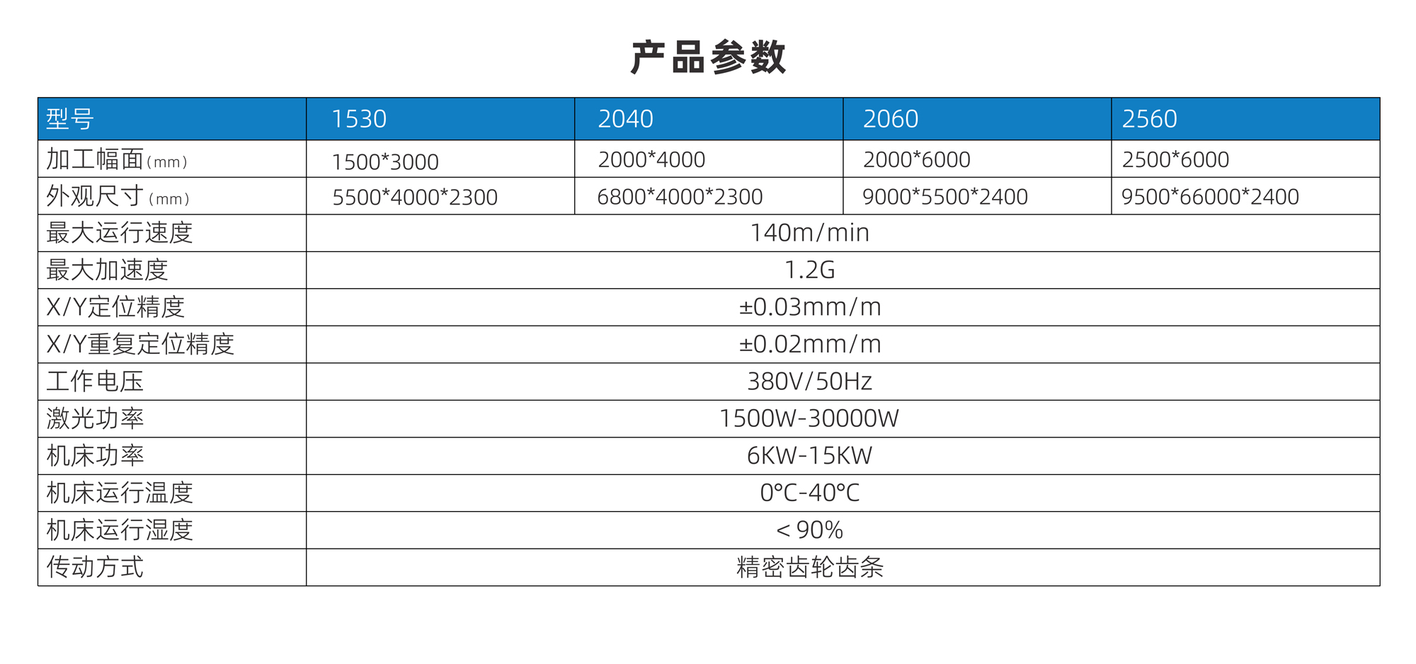 加工幅面(mm) 1500*3000 2000*4000 2000*6000 2500*6000